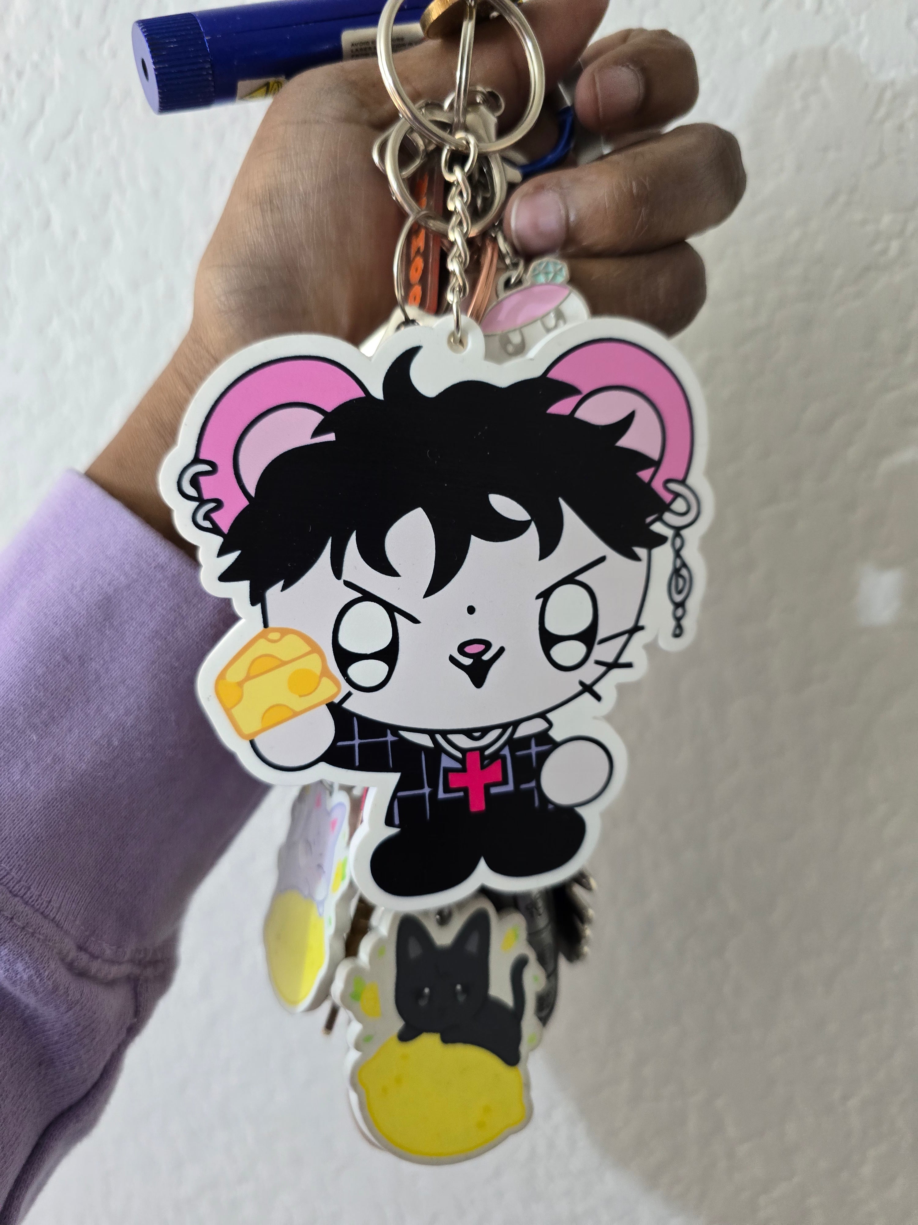 Keychain Set w/ Alarm, Pompom, Chapstick Holder, Sanitizer or Lotion Bottle and Holder, Bottle Opener, Window Breaker, Escape Stick, Wristlet, and a Cat!